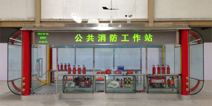 配有高效灭火剂的消防车放置在公共社区,1辆消防公车站可管理100户,通过智能消防无线报警网络服务系统实现对每户的管控。其中任何一户发生火情时系统启动,消防指挥官可以通过现场视频远程遥控操作消防车实施灭火。